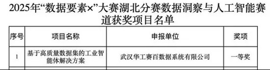 近日,由國家數(shù)據(jù)局、湖北省人民政府指導(dǎo),湖北省數(shù)據(jù)局會同14個省直部門聯(lián)合主辦的2025年“數(shù)據(jù)要素x”大賽湖北分賽決賽評審工作收官。華工賽百繼2024年在 “數(shù)據(jù)要素×” 大賽湖北分賽工業(yè)制造賽道榮獲一等獎后,此次憑借“基于高質(zhì)量數(shù)據(jù)集的工業(yè)智能體解決方案”,再度斬獲2025年“數(shù)據(jù)要素x” 大賽湖北分賽 “數(shù)據(jù)洞察與人工智能” 賽道一等獎。