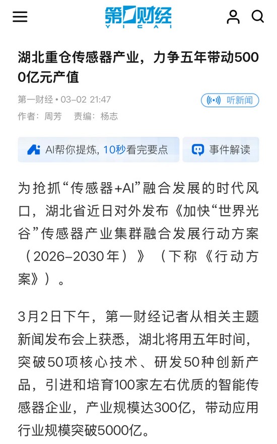 華工科技董事長(zhǎng)馬新強(qiáng)對(duì)第一財(cái)經(jīng)記者表示,公司將聚焦高端智能傳感器技阿術(shù)攻關(guān),推進(jìn)“機(jī)器人+ AMR +視覺智能體 + MES”一體化協(xié)同,應(yīng)用場(chǎng)景從“家電+汽車”向“智慧生活+智慧出行+智慧電網(wǎng)+光伏儲(chǔ)能+具身智能”深度拓展,并聯(lián)合上下游企業(yè)圍繞核心零部件等“卡脖子”領(lǐng)域開展聯(lián)合攻關(guān),實(shí)現(xiàn)核心部件從研發(fā)到量產(chǎn)的自主可控,全面提升國(guó)產(chǎn)傳感器產(chǎn)業(yè)鏈供應(yīng)鏈韌性與安全水平。