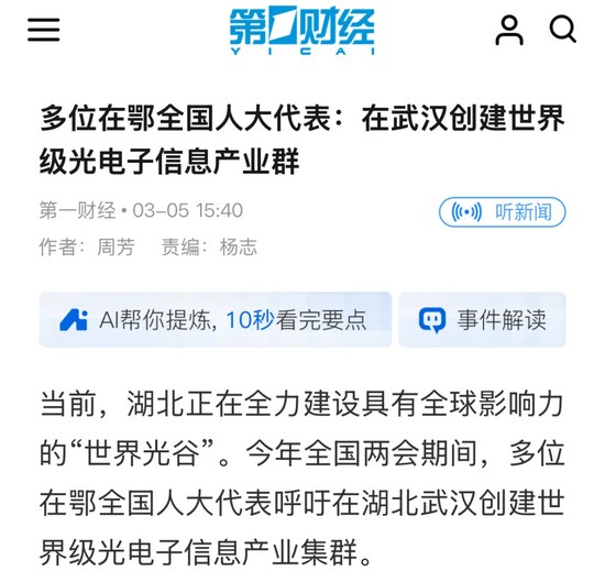 “在武漢創(chuàng)建世界級(jí)光電子信息產(chǎn)業(yè)集群,是服務(wù)國(guó)家全球化發(fā)展戰(zhàn)略、搶占全球科技產(chǎn)業(yè)競(jìng)爭(zhēng)制高點(diǎn)的關(guān)鍵布局,其能夠在集成電路、AI等關(guān)鍵核心領(lǐng)域代表國(guó)家參與全球競(jìng)爭(zhēng)?!?月27日,全國(guó)人大代表、華工科技產(chǎn)業(yè)股份有限公司董事長(zhǎng)馬新強(qiáng)在接受《證券日?qǐng)?bào)》記者專訪時(shí)表示,今年兩會(huì)期間,將重點(diǎn)關(guān)注在武漢創(chuàng)建世界級(jí)光電子信息產(chǎn)業(yè)集群相關(guān)事項(xiàng)。